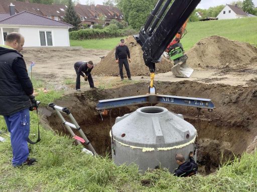 Aushub, Setzen, Anschlüsse, Hinterfüllung.